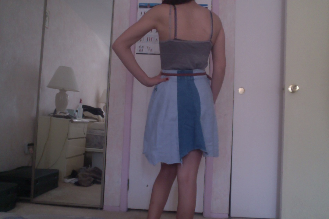 Note: The size of the skirt can be adjusted by changing the sizes of the shirt used, using more sleeves or by changing the width of the panels. And, I’ve been able to adjust the size of my skirt a bit by buttoning it on different buttons on the cuffs of the sleeves, which will be what sits at your waist.