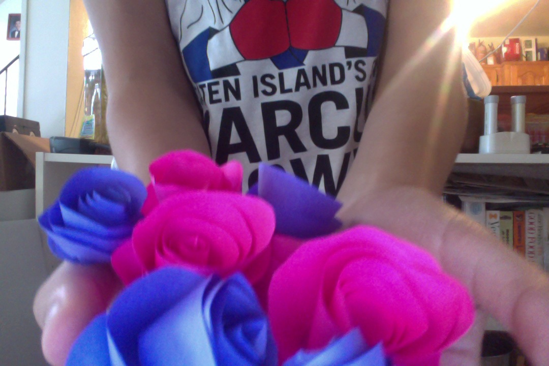While making my pink and purple flowers, I had fun experimenting with different sized squares of paper and circular and oval shaped spirals. No matter what adjustments you make the flowers look great. This craft is simple enough for a kids to understand, so it would be a great arts and craft project. I can imagine tons of ways in which you can use these flowers! The writer of the tutorial used them for a table setting, however one idea could be to create bouquets or garlands of these flowers. Try experimenting with different types of paper, sizes and spirals and see what you can create!