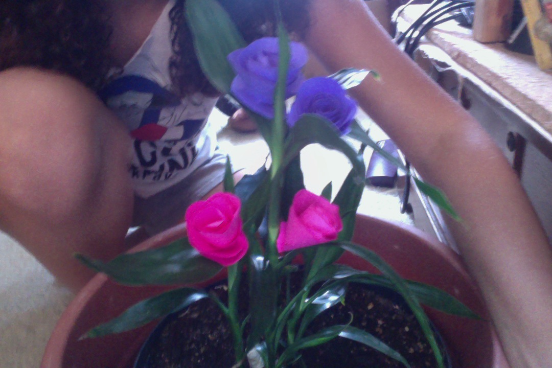 I stuck the flowers on one of my mom’s plants! I did end up fooling my brother!